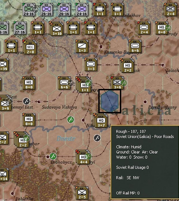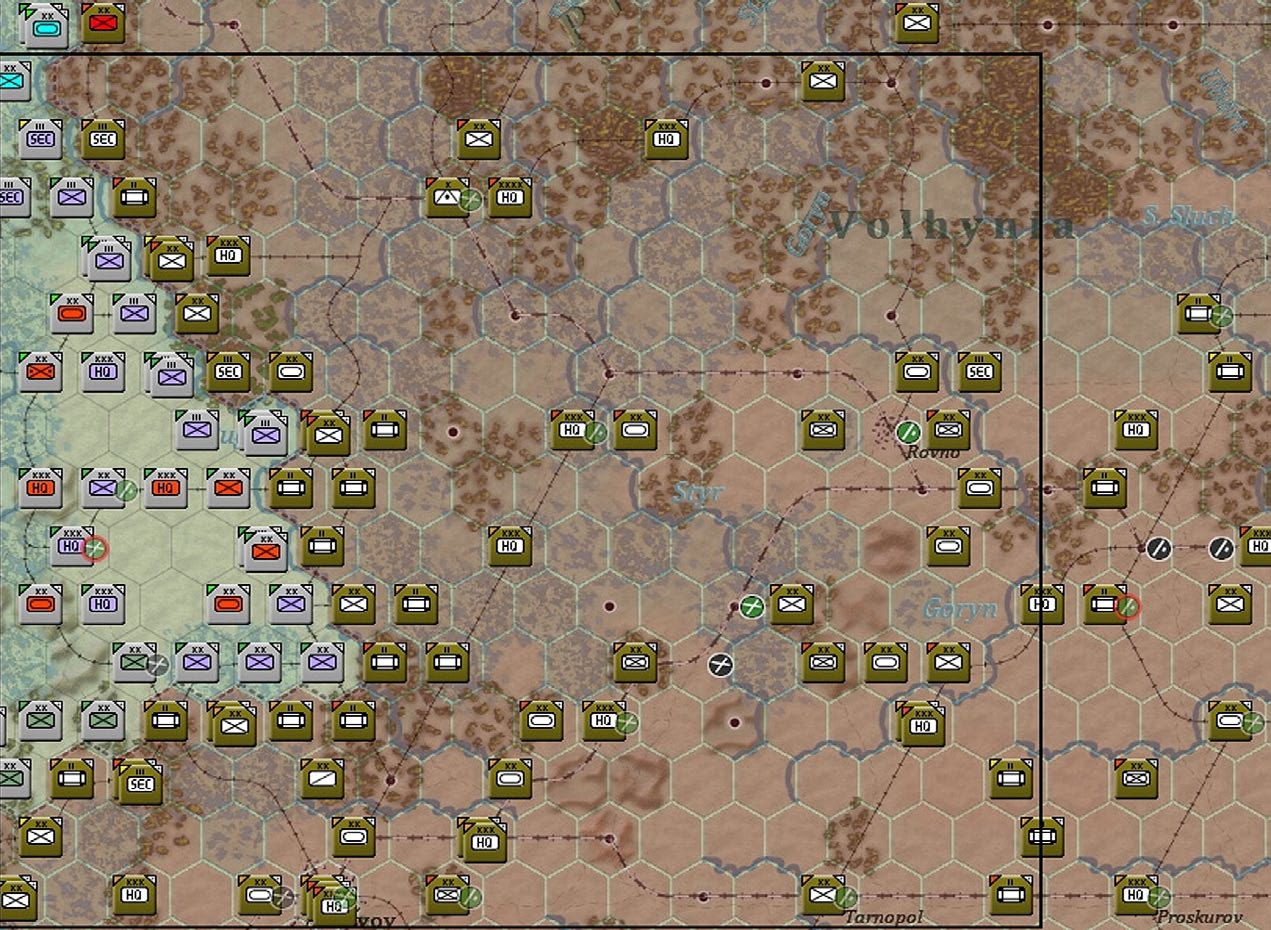 If a Soviet national hex south or east of 187,187 (just southeast of Lvov) is Axis controlled then all of Southern Front and related airbases will be unfrozen.