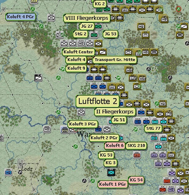 Air Operational Groups (a collection of air group units) report to air commands (for the Germans these are the Luftflotte and Fleigerkorps, other Axis nationalities use their own command structure and the Soviets use Air Armies and some Air Corps). For the Germans, the air commands in turn report to the OKL.