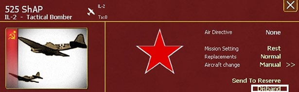 The Air Unit can be set to one of two main basic statuses. A unit in rest will not be used in the current turn but will regain lost morale and reduce fatigue.