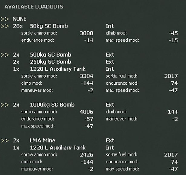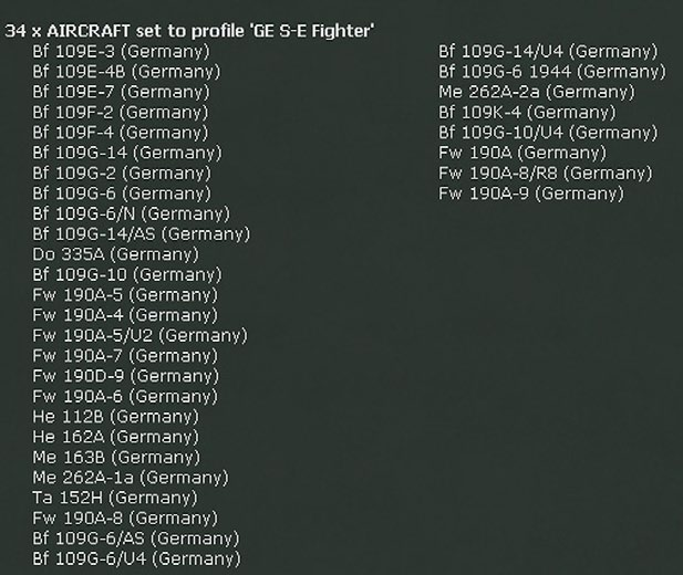 Aircraft carry devices such as machine guns, cannons, rockets, bombs, drop tanks and electronic warfare systems such as radar. Aircraft may have several different load outs of devices that can be selected through the Air Group Unit detail window (37.16.3). Pilots and air crews are assigned to air group units and their aircraft from the manpower pool, with pilots also being tracked individually as they gain experience.