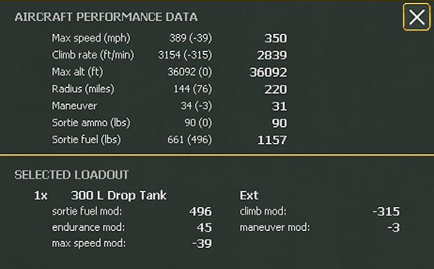 Fighter aircraft carrying drop tanks will automatically drop them once they have been used up during the mission. Bomb carrying aircraft will drop their drop tanks at the same time they drop their bombs. Fighters and Fighter Bombers carrying drop tanks and/or bombs will fight less effectively if engaged in air to air combat by enemy interceptors. In such a situation, there is a chance that some of the aircraft will prematurely drop bombs and/or drop tanks to more effectively engage the enemy interceptors.