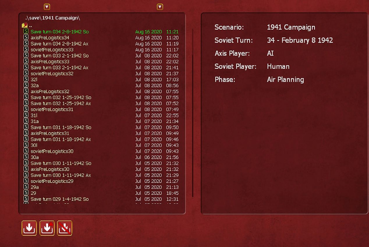 They will then enable PBEM, load the save and then will be prompted to create their own password. The first player will then take their turn, saving whenever they want. Once the first player has finished their turn and selected the end turn button (F12), the computer will conduct the next Logistics phase and the Amphibious phase during which the map display will be blank, then prompt the first player to save the game so it can be e-mailed to the second player to continue the PBEM cycle.